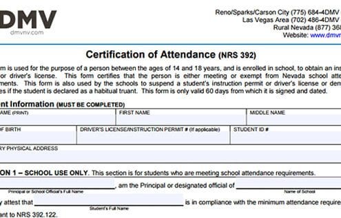 Nevada law mandates that teen drivers under the age of 18 must now present a signed DMV form 301 when applying for a driver's license. This new form (301) is a certificate signed by a high school official that verifies you meet school attendance requirements. During the summer, when school is out of…